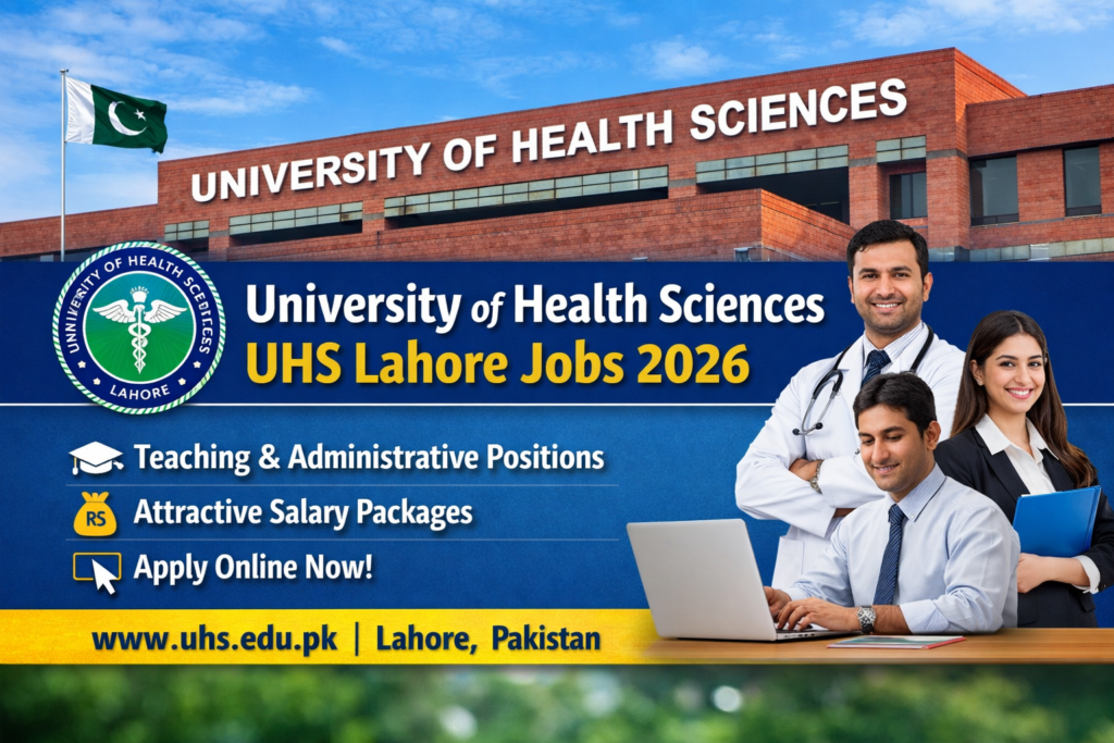 University of Health Sciences UHS Lahore Jobs 2026 are officially among the most awaited public sector career opportunities for professionals, academicians, researchers, and administrative experts across Pakistan. University of Health Sciences Lahore is a prestigious government institution working under the Punjab government, responsible for regulating medical education, examinations, research standards, and academic excellence in health sciences. With the announcement of UHS Lahore Jobs 2026, the university aims to recruit competent, motivated, and skilled individuals for multiple posts including faculty positions, research roles, administrative staff, technical experts, and support services. These jobs are offered on contract and regular bases depending on the position, providing long-term career stability, attractive salary packages, and a professional working environment.